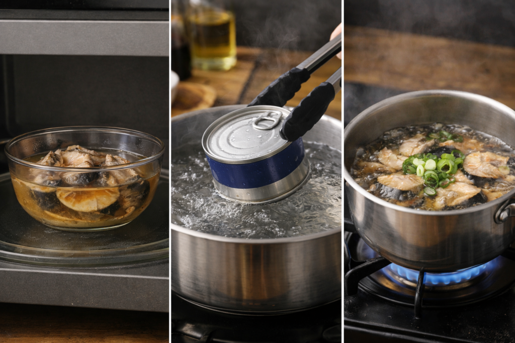 鯖缶の温め方は?湯煎・電子レンジ・トースターの安全な方法とNG加熱を解説