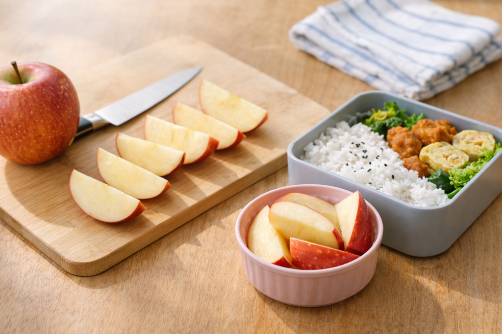 りんごをお弁当に持って行く方法|簡単な切り方と変色防止・詰め方のコツ