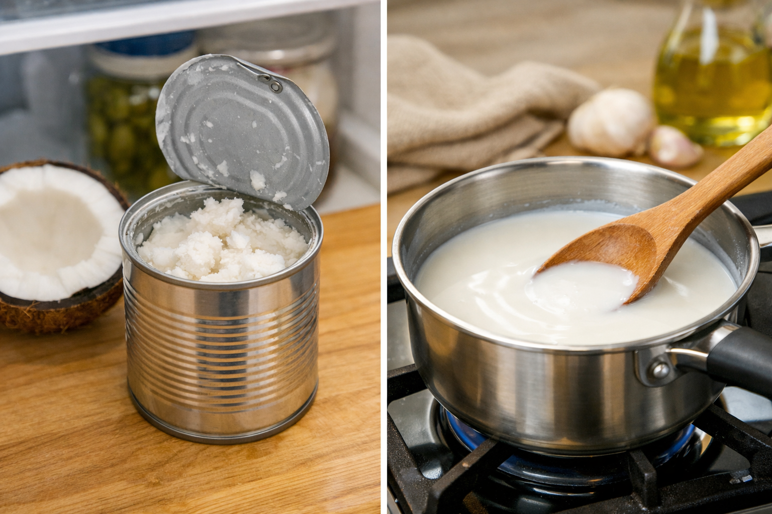 ココナッツミルクを冷蔵庫から出したら、白く固まっていて驚いた経験はありませんか?