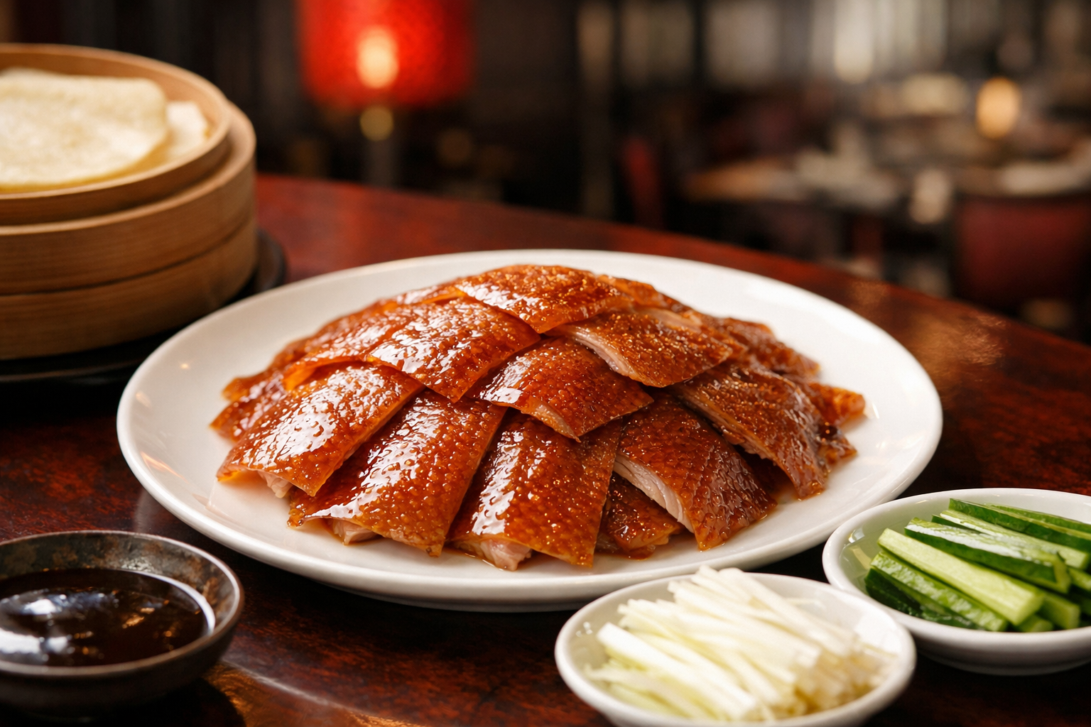 北京ダックは、料理そのものだけでなく「切り分け」「盛り付け」「提供の所作」まで含めて一つの完成形です。