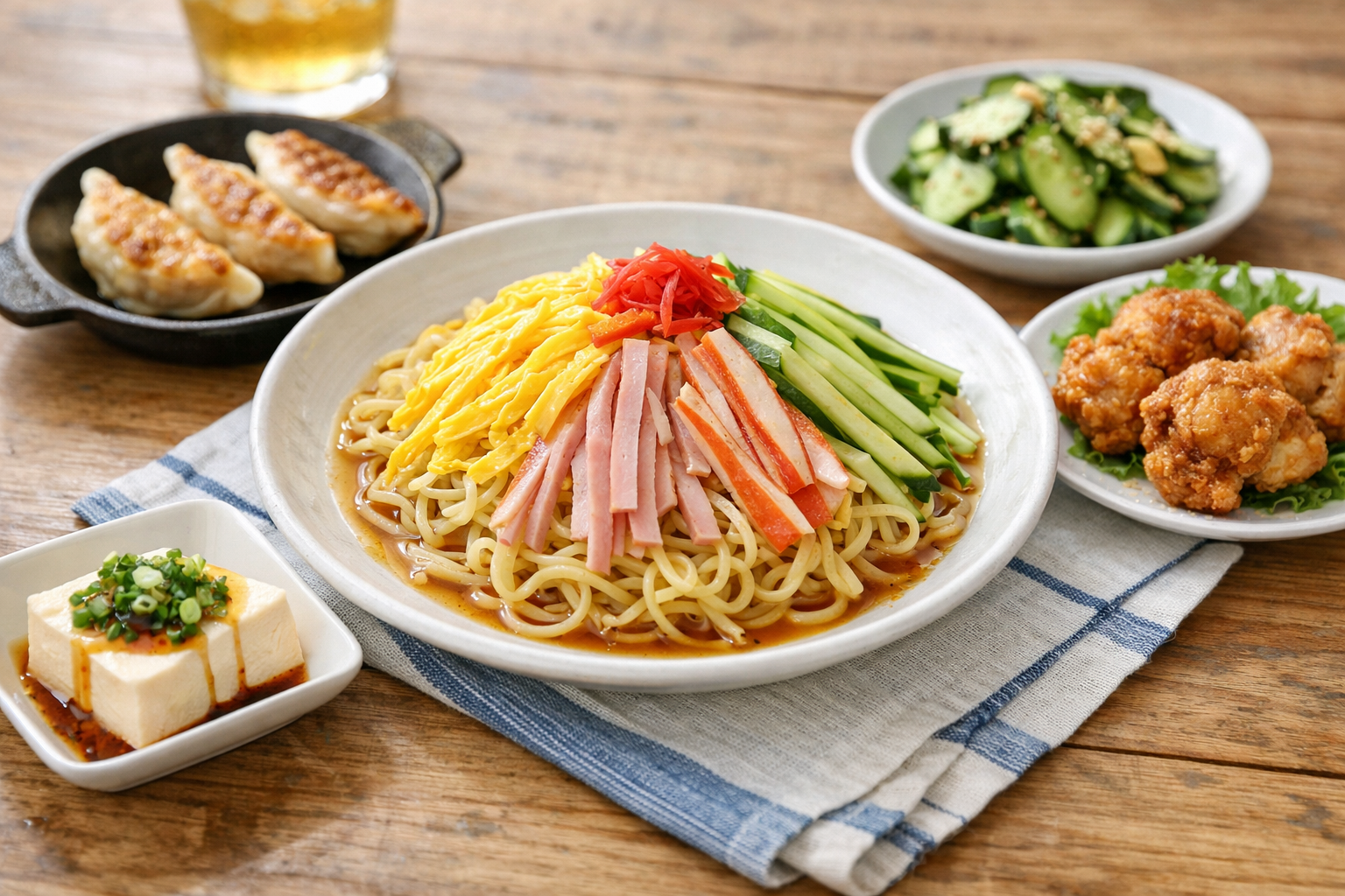これらのサイドメニューは、冷やし中華のさっぱりとした味わいと相性抜群で、彩りと風味を加えて食卓を彩ります。