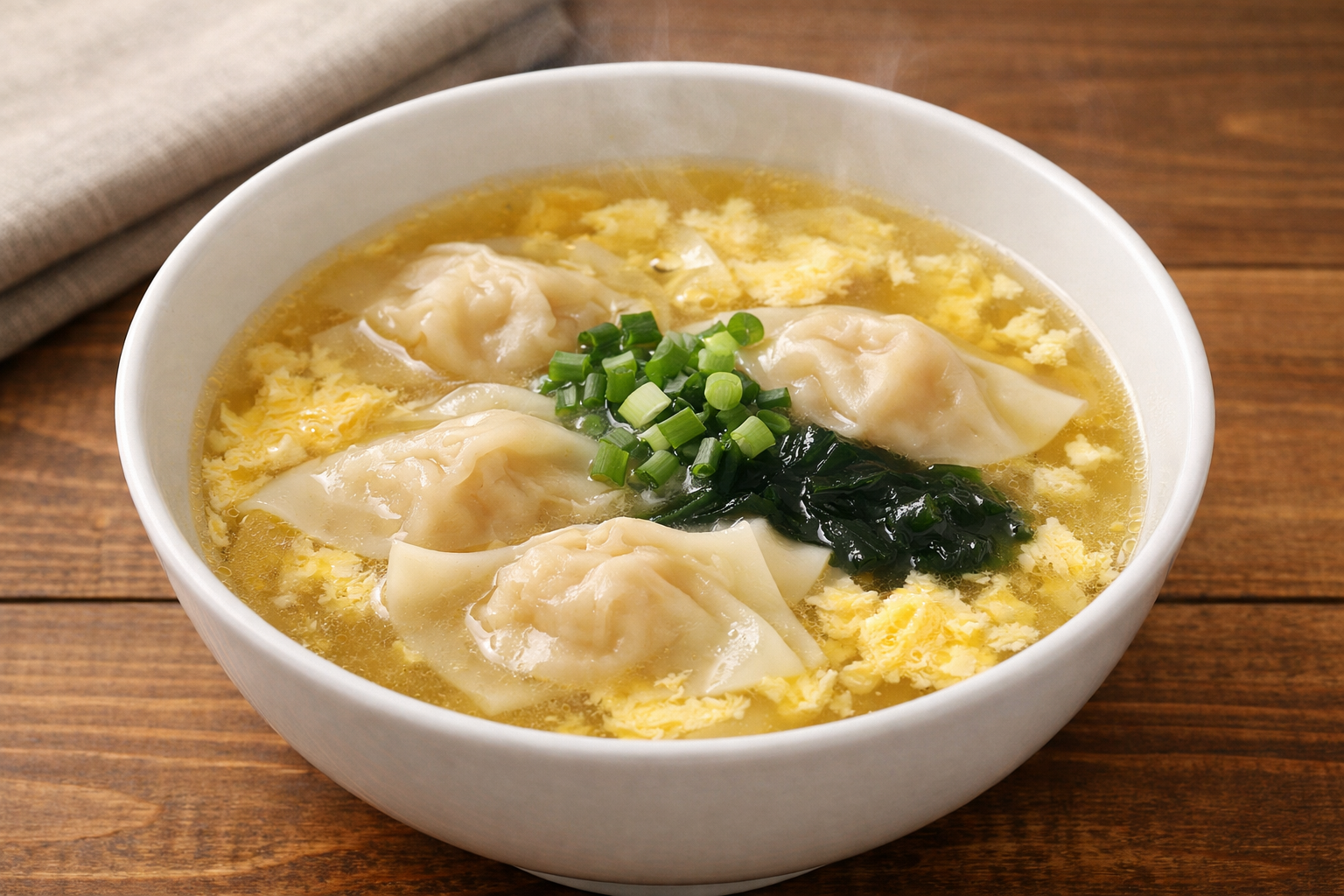 ラーメン風のワンタンスープは、中華料理と日本料理の融合として、新しい風味を提供します。