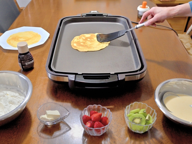 ホットケーキのミクスには初めから砂糖が加えられているので、甘味の調節が必要になります。