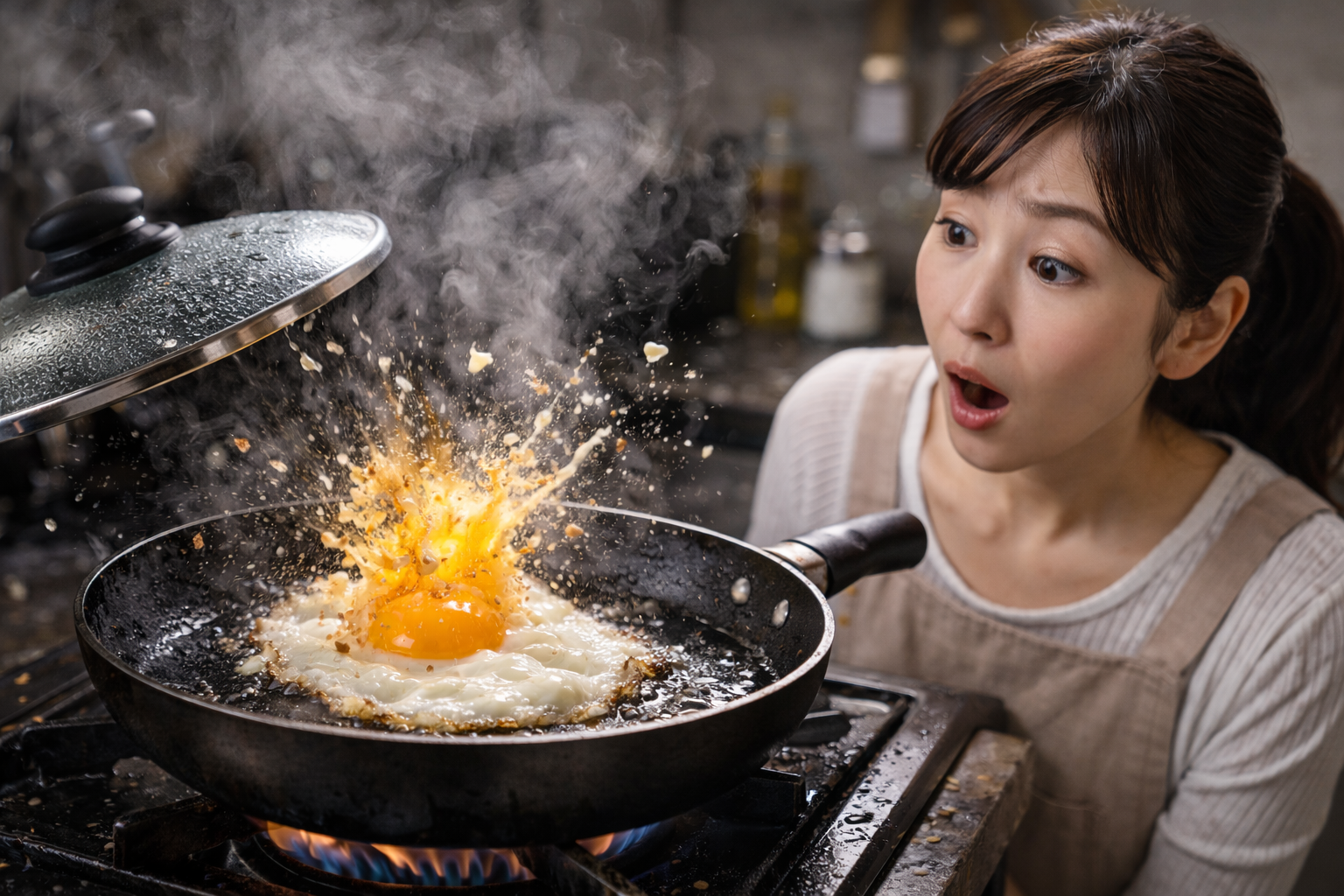 目玉焼きは「水を入れたから爆発する」というわけではありません。