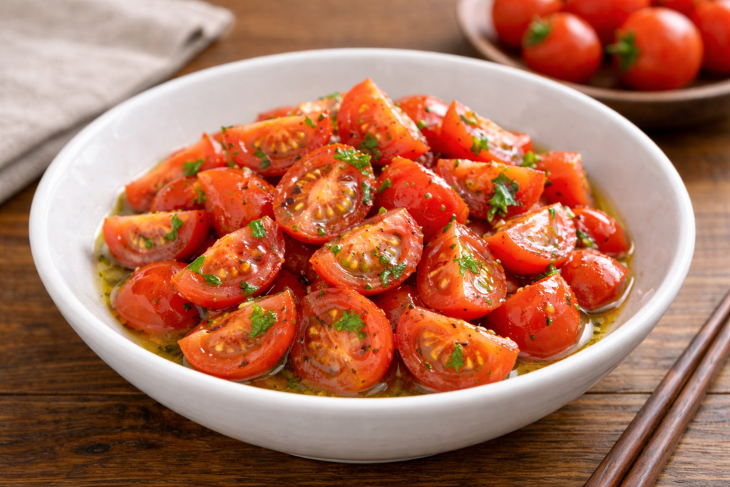 カレーうどんのもう一品。おすすめの2つ目の副菜はトマトのマリネです。